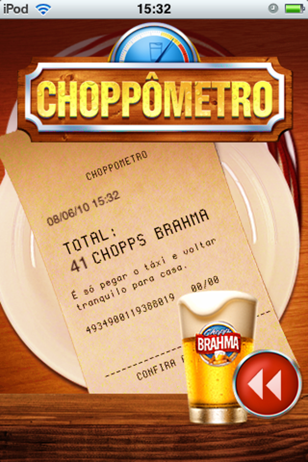 Para não passar da conta – nem no bolso e, muito menos na sobriedade – use o Choppômetro Brahma. O aplicativo oficial da companhia cervejeira em que você marca quantos copos já mandou pra dentro.